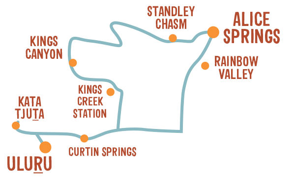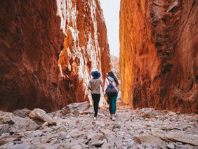 One of Australia's greatest walks, the Kings Canyon Rim Walk is best enjoyed in the morning. Every part of the walk reveals something spectacularly different. Begin by hiking to the rim of the canyon, climb through Priscilla's crack and into the auditorium, peer over the edge of the sheer sandstone walls, descend into the Garden of Eden and relax by her tranquil waterhole, and wander through weathered rock domes of the Lost City. This walk has it all. If you have time, or for those unable to hike up to the scenic rim of the canyon, the Kings Creek Walk is beautiful and easy, and can be enjoyed any time of day, all year round. On your way to Uluru, the nearby Kathleen Springs has an easy walk to a pretty waterhole or, for the more adventurous, an overnight trek on the Giles Track. And little further south, stop into Kings Creek Station, a working cattle station and camel farm, to enjoy some outback hospitality and learn about station life in the remote Red Centre.